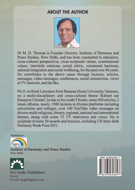 Communities of all compositions, like caste, class, creed, language, gender, region, ideology, culture, food and costumes, have to conduct themselves in an inclusive, collaborative and mutually enriching manner. Only such a style of living with each other will take the citizens and communities of the country towards larger horizons, and eventually towards the sublime realization that the ‘oneness of the country and the unity of the citizens’ are the culminating attainment as regards ‘nationality and citizenship’. This is the logic of the book as well as the objective as well as vision of its Editor. Obviously, the book strives to achieve ‘harmony and peace’ among religious and social communities as the right stepping stone to harmonious living as citizens of the same country. The book is sure to contribute to the social, cultural, national and spiritual wellbeing of the citizens of India, of any country for that matter, through the spirit of communal harmony and national integration.
