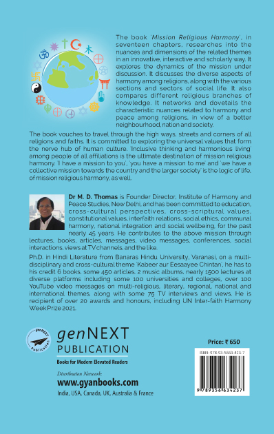 The book vouches to travel through the high ways, streets and corners of all religions and faiths. It is committed to exploring the universal values that form the nerve hub of human culture. ‘Inclusive thinking and harmonious living’ among people of all affiliations is the ultimate destination of mission religious harmony. ‘I have a mission to you’, ‘you have a mission to me’ and ‘we have a collective mission towards the country and the larger society’ is the logic of life, of mission religious harmony, as well.